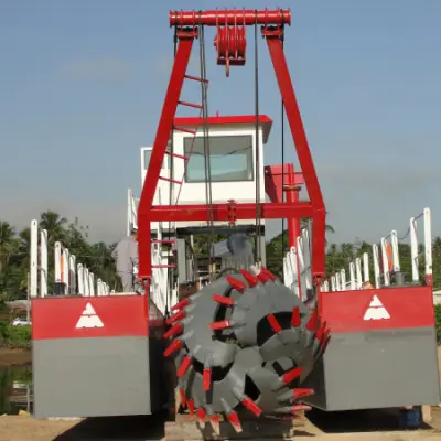 The small river dredging sand cutter head dredger dredging devices are driven by hydraulic, concentrate controlled. The operator cabin is dismountable, which can lower the height of the dredger when maneuvering and allow the river sand dredger to pass bridges easily and safely. When the dredger is transported long way from conjunctive water areas,the dredger body can be dismounted and transported by trucks or trains on road. The dredger can be fixed with anchoring booms and spud carriage.